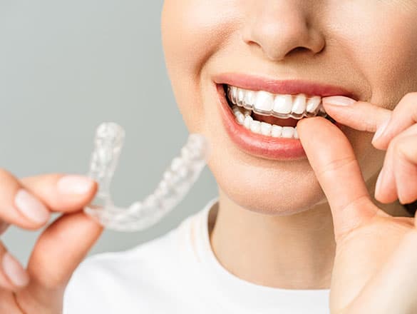 歯に金属を付けてワイヤーを用いる従来の方法ではなく、透明なプラスチック製のものを装着し、なおかつ自身で取り外し可能な装置となります。